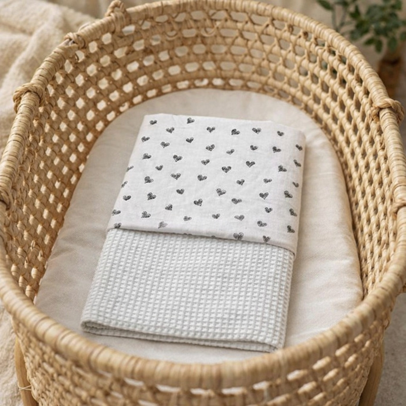 Dekentje van Wafelkatoen in de kleur wit in combinatie met katoen hartjes.